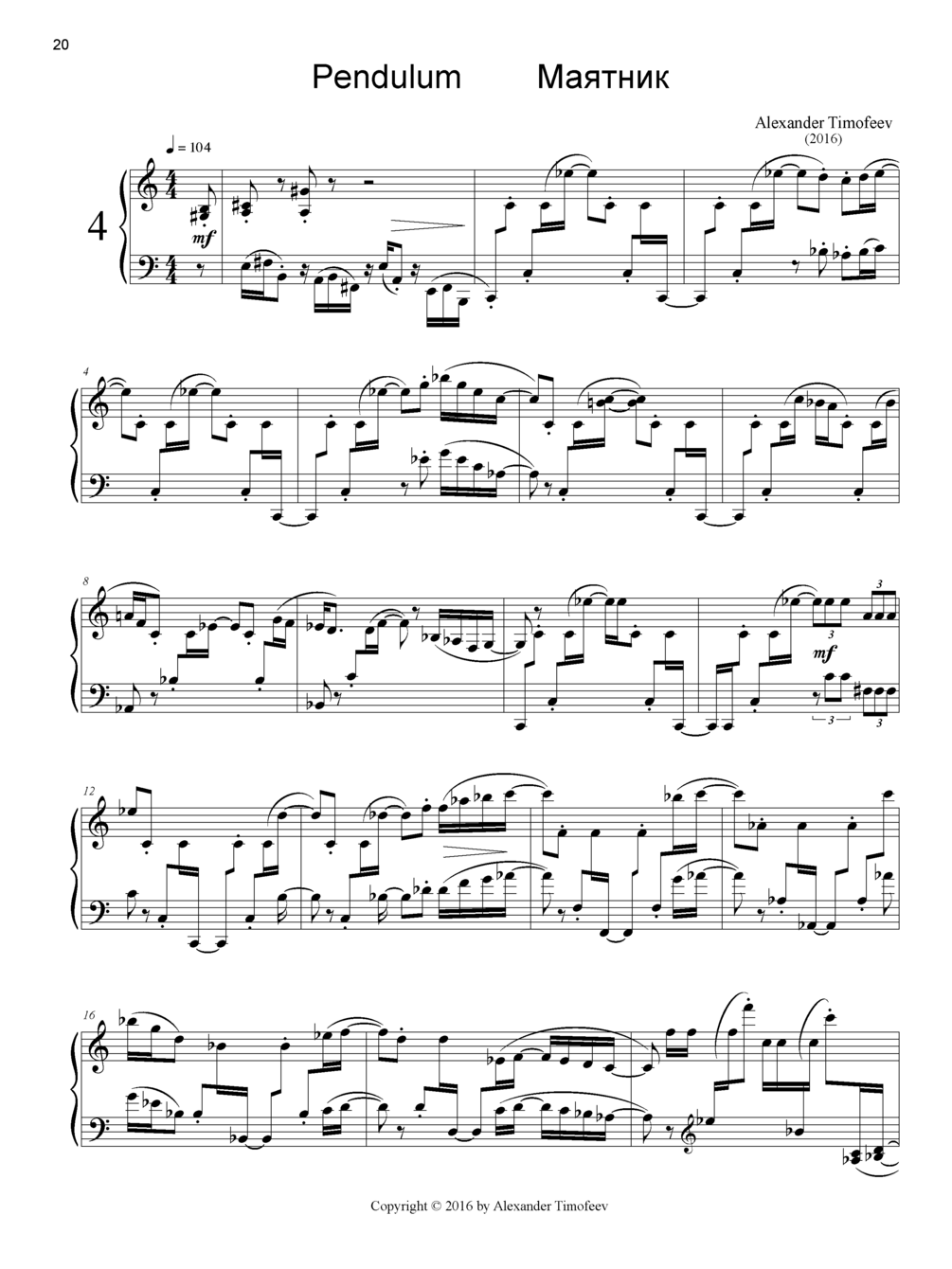 Alexander Timofeev: Four Pieces for Piano, Op. 14 (2014-2016). PDF, 24 pages.